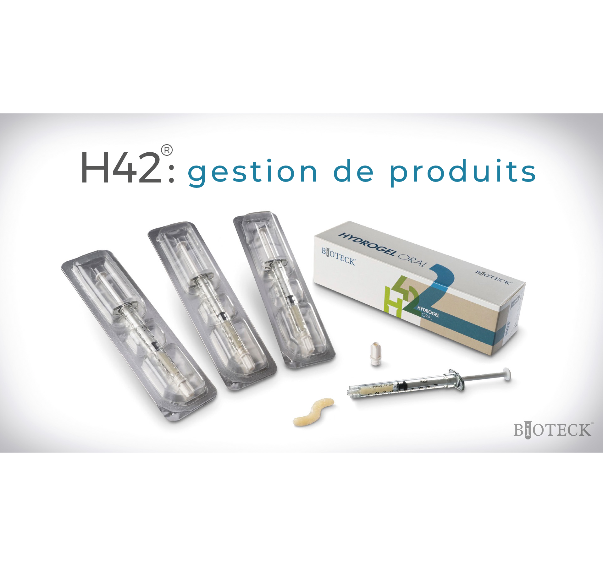 H42® a été créé grâce à Exur-Teck®, un procédé technologique innovant et unique développé par Bioteck®, qui combine des composants naturels, tels que le collagène d’origine équine, à des polymères résorbables et à des quantités annexes d’acide ascorbique pour moduler la viscosité.