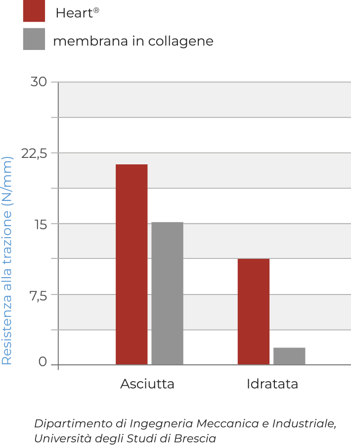 Grazie alle sue proprietà meccaniche Heart® può essere suturata e tensionata senza rischio di rotture.